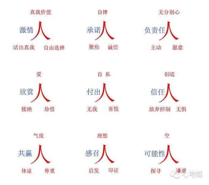 教练模式有个“九点领导力”,分别为激情、承诺、负责任、欣赏、付出、信任、共赢、感召、可能性。这“九点领导力”在创业、组建小团队、成为优秀团队领导人等方面都有着巨大的作用。“九点领导力”就像罗盘上的指针,可以照亮被教练者内心的盲点,让他看到人生真正的方向。文字只是教练技术的载体,真正的精髓是让被教练者看到他的内在系统是如何运行的,看到内在系统是如何驱动外在行为的。也就是说“九点领导力”只是一个工具,工具的关键在于如何使用,充分发挥工具的价值,帮助自己拿到想要的结果。创业者如果用好这个工具,或者说具备这九个领导力,那么,我们就能快速地增强自己的成交力,真正做到在任何时候任何地点成交任何人,我们就能快速地扩大自己的影响力和领导力,建立一支攻无不克战无不胜的团队。