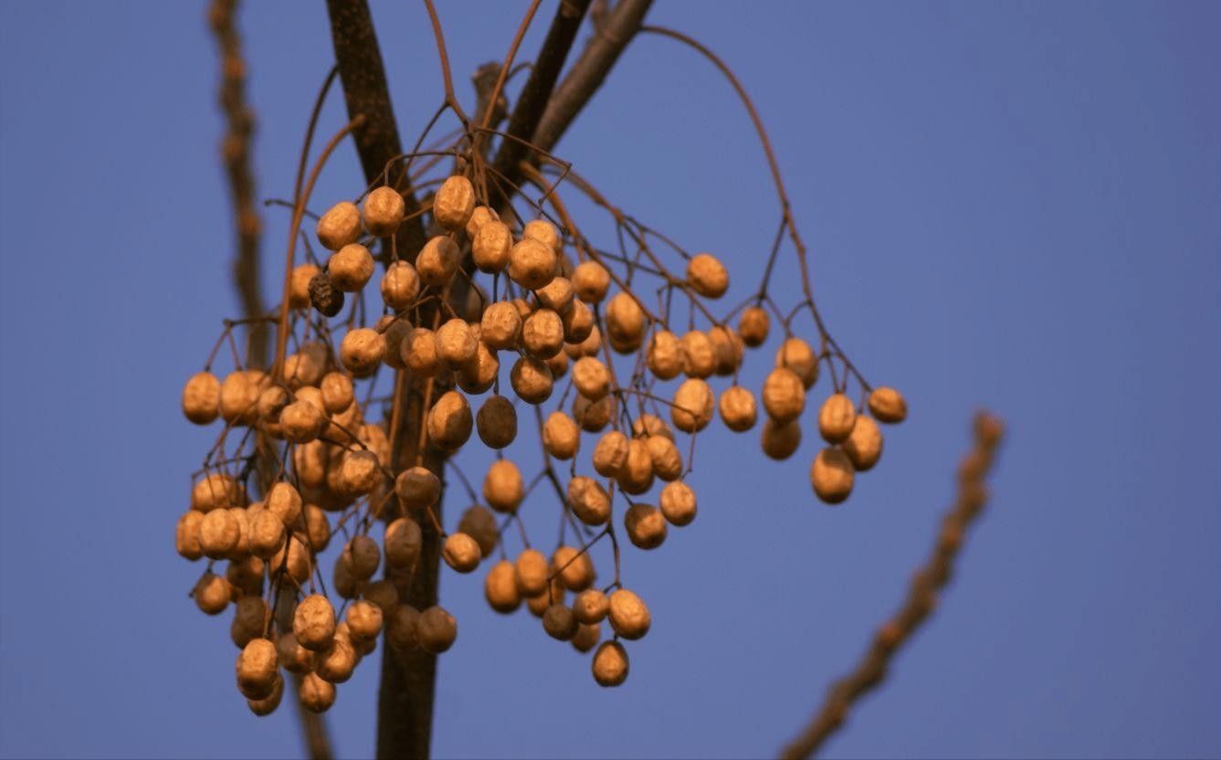 形态特征:核果球形至椭圆形,内果皮木质,种子椭圆形。果实呈金黄色至红褐色,表面有光泽,具深色小点。功效:有行气止痛,杀虫的作用,但苦楝子有一定毒性,使用需谨慎。