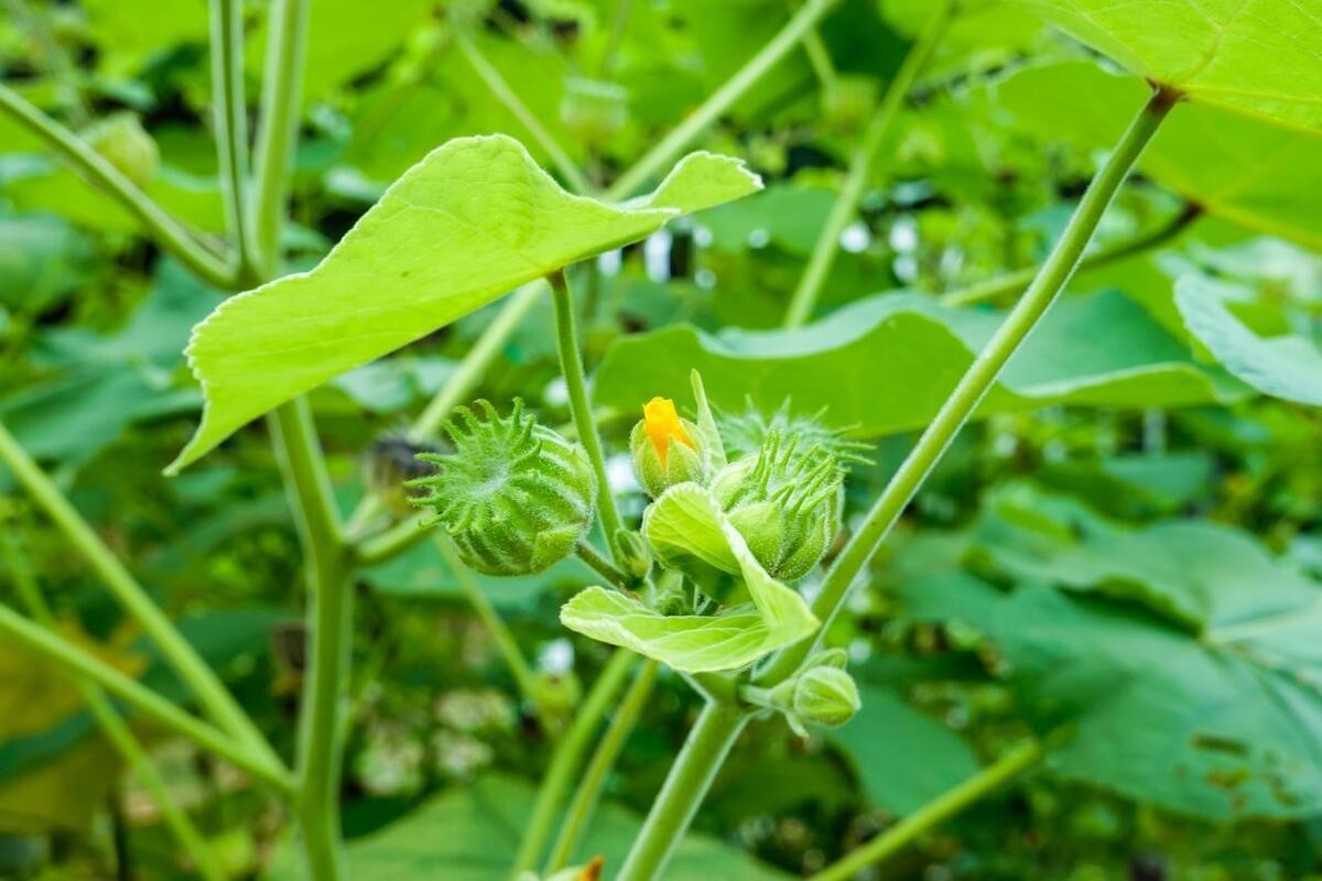 形态特征:一年生亚灌木状草本,茎枝被柔毛。叶互生,圆心形,先端长渐尖,基部心形,边缘具细圆锯齿,两面均密被星状柔毛。花单生于叶腋,花梗被柔毛,近端具节;花萼杯状,密被短绒毛,裂片 5,卵形;花冠黄色,花瓣倒卵形。功效:种子可清热利湿,解毒,退翳。全草可解毒,祛风。