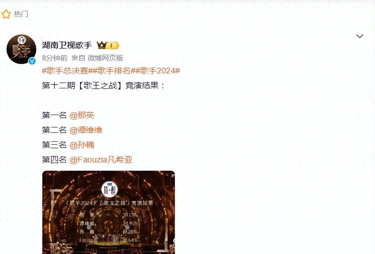 《歌手2024》总决赛排名出炉,那英拿下歌王,凡希亚首次掉出前三