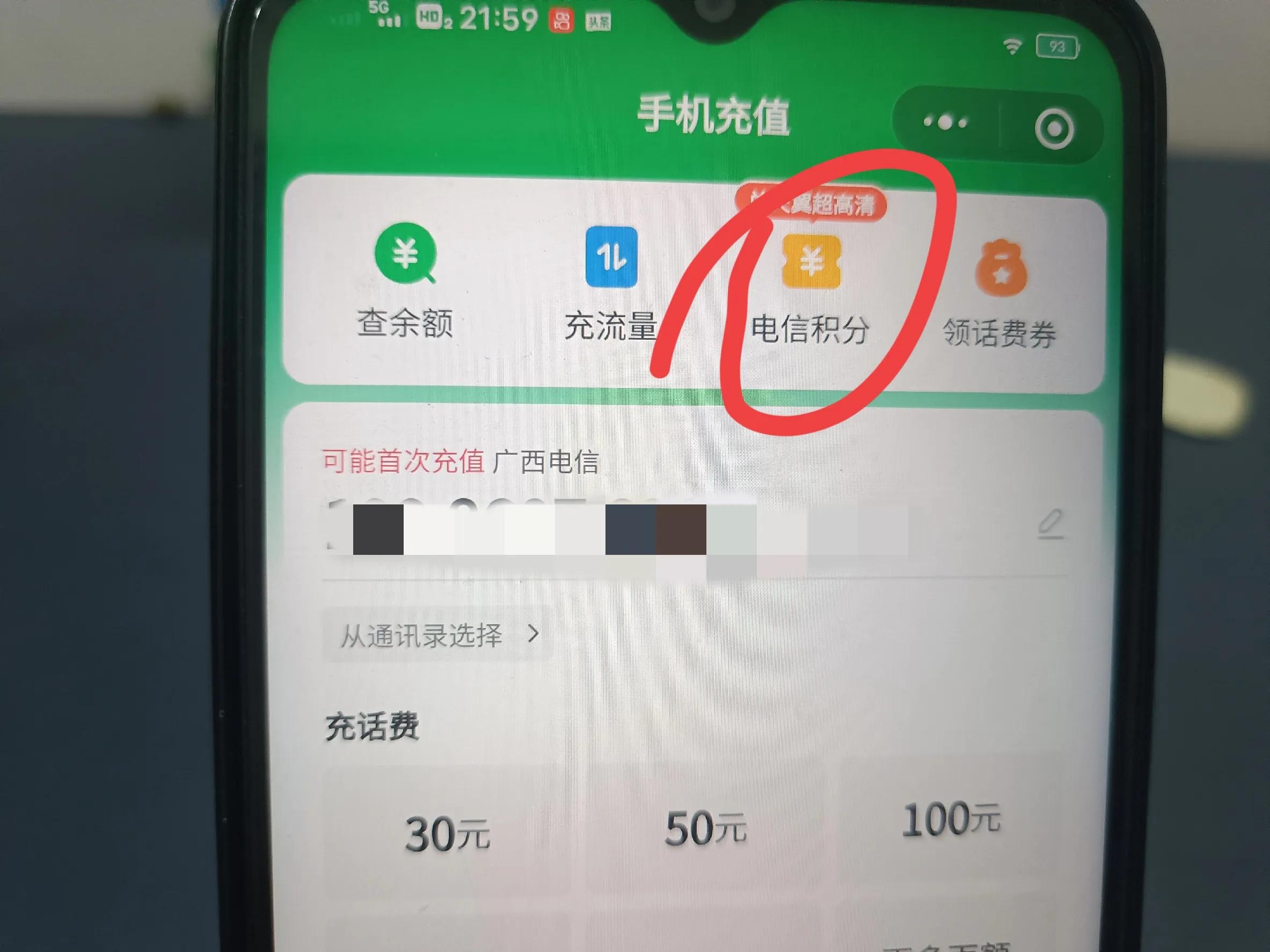 那么在微信除了可以查话费余额以外,微信还提供了话费积分查询功能,在话费查询界面,我们可以在顶部找到“积分查询”或类似的选项,点击进入积分查询页面(如上图所示)