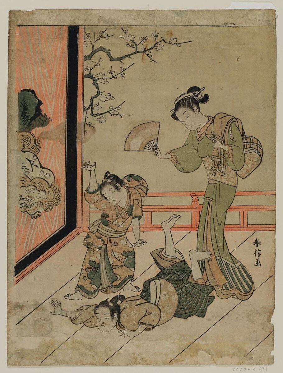 关于春信的早年生活知之甚少。他来自一个武士家庭,艺术家的真名是Hozumi Jirobei。他出生于江户(今东京)。他在日本美术史上最大的学校狩野学校接受了艺术教育。然而,对春信影响最大的是画家和雕刻家西川祐信,他可能是春信的直接老师。