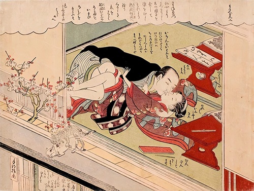 他也是 1760 年代最早为歌舞伎演员画肖像的人之一。像当时的许多艺术家一样,春信也创作了许多 Shunga 春画类型的作品,色情浮世绘版画。