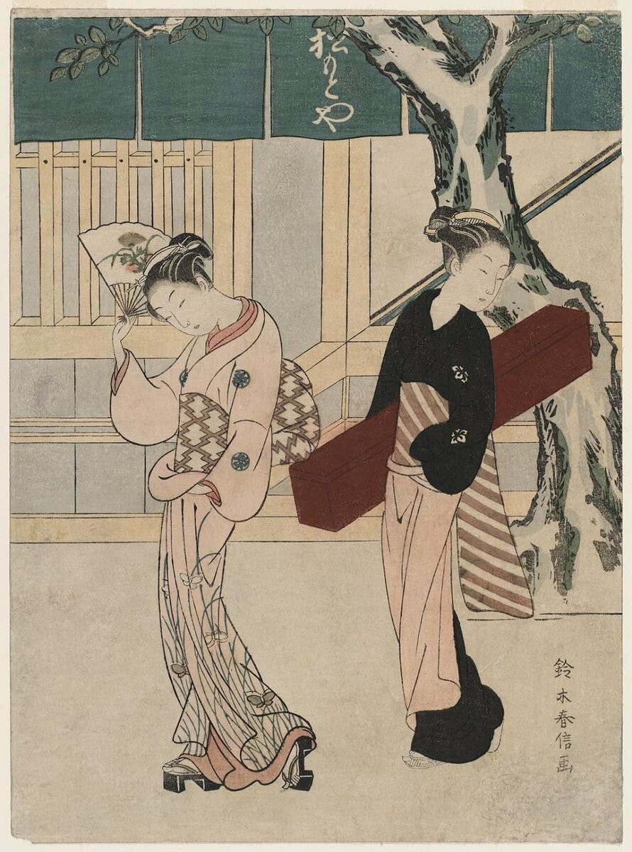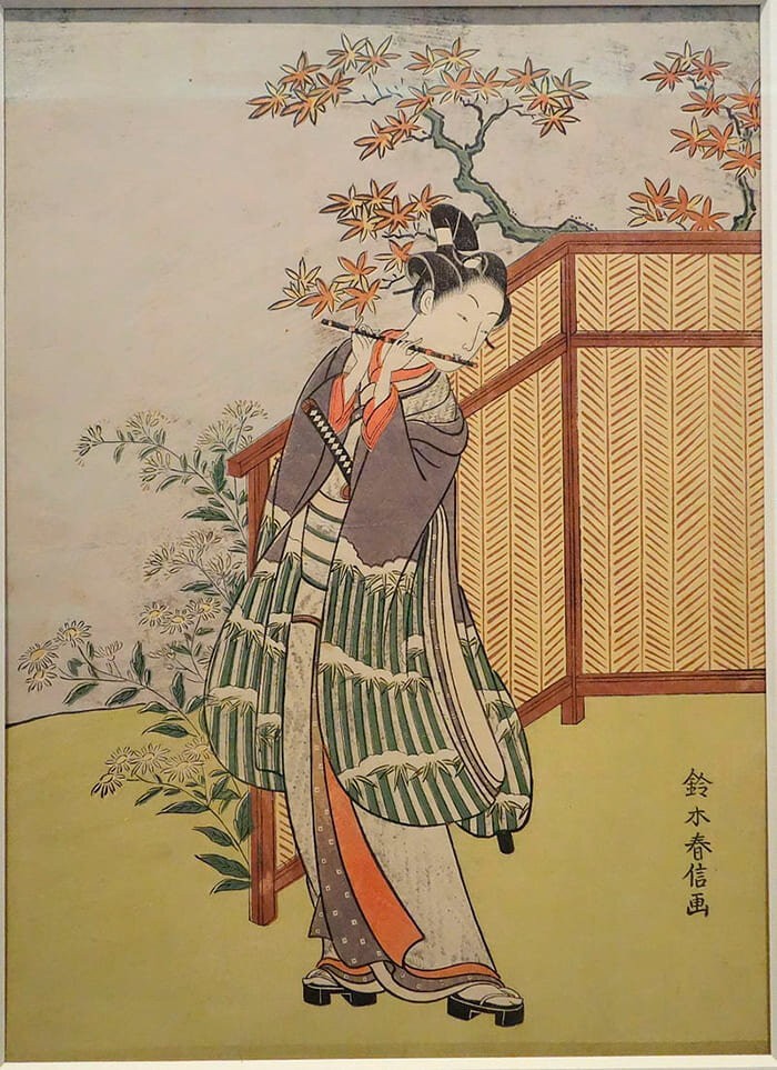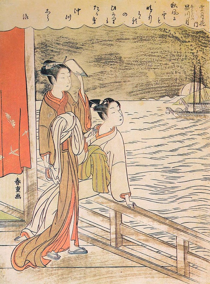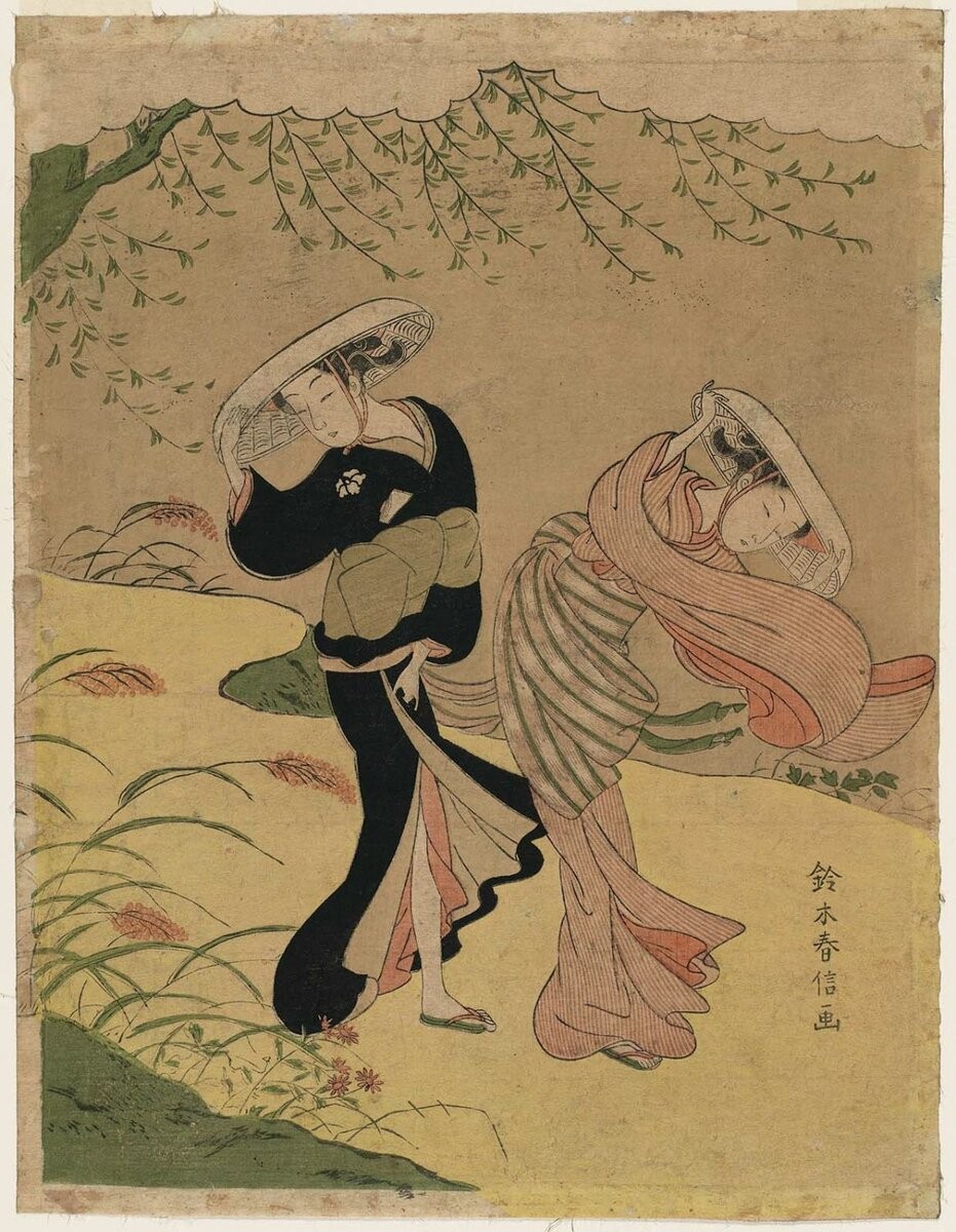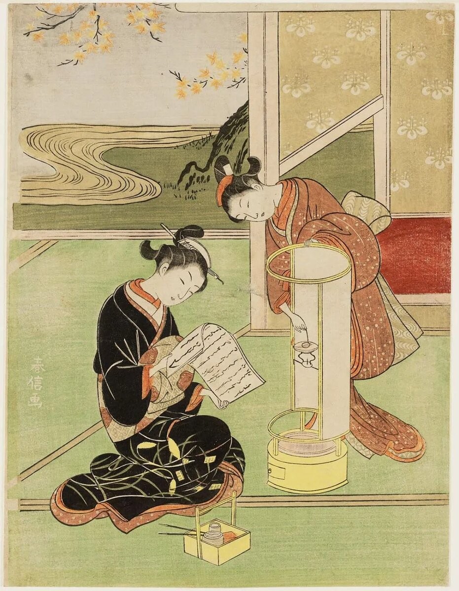 铃木春信(Suzuki Harunobu,1725-1770 年)是日本浮世绘画家,他于 1765 年率先创作了全彩版画。这种版画后来被称为锦绘,即锦缎画。