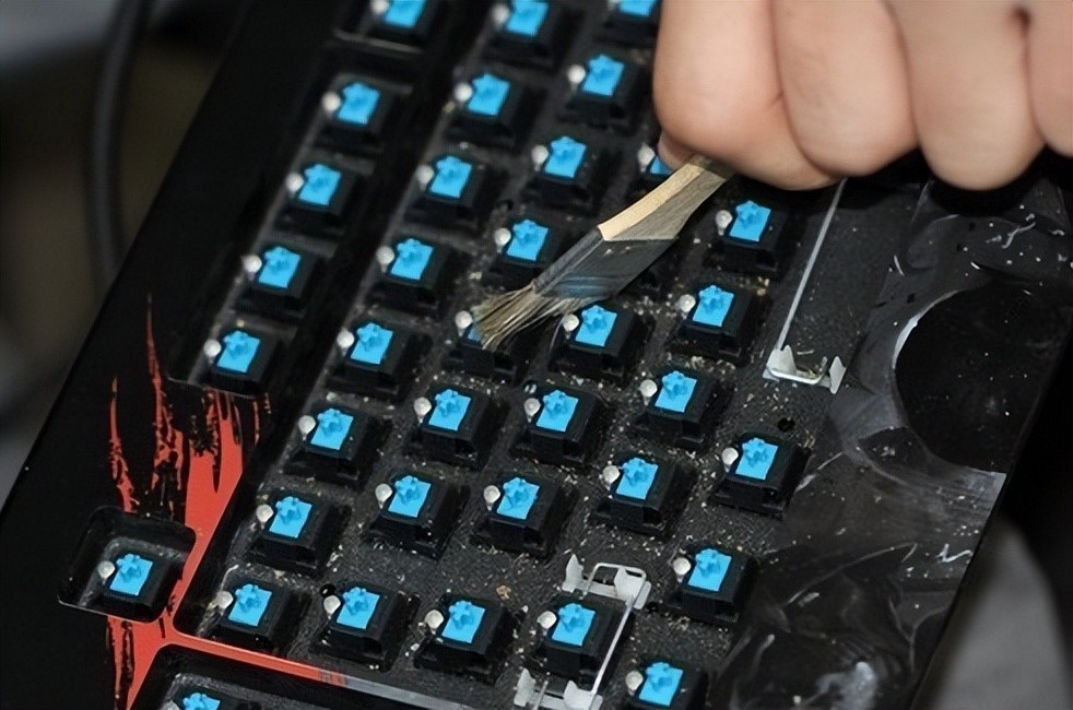 最后是键盘和鼠标,用刷子或者硅胶泥清理键盘缝隙的灰尘和脏东西,然后用抹布擦拭键盘和鼠标。如果是台式电脑键盘,最好将每个键帽都取下来清理,这样清理得更干净。