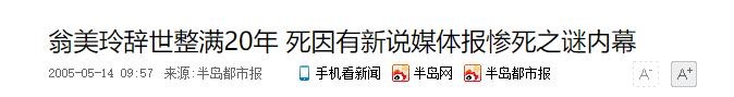 翁美玲的去世确实是一个令人痛心的事件,她的死因至今仍有许多猜测和争议。官方的说法是自杀,但也有一些声音提出了他杀的可能性。不过,由于缺乏确凿的证据和时间的推移,这些争议很难得到明确的解答。