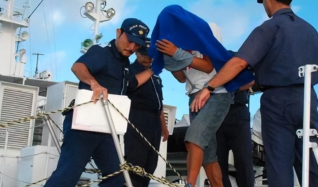 而日本护卫舰见拿渔船没办法,只好上驱逐舰,并屈辱的向日本海上保安厅求助。