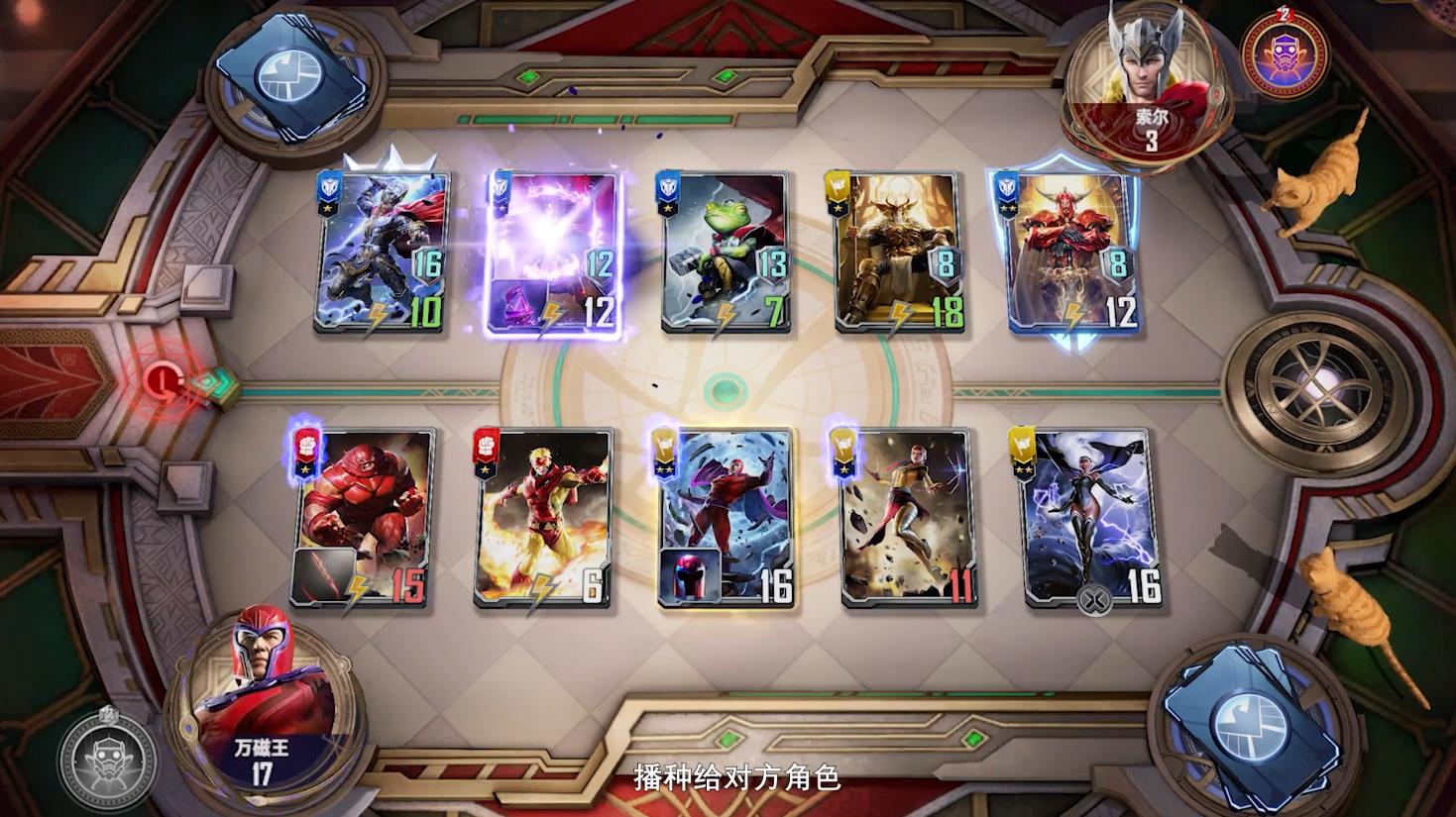 就拿万磁王来说,他可以控制自己的“磁场能量”,来对双方的装备进行控制,不管对面是神还是多强力的超级英雄,比如雷神的核心装备雷锤,直接就会被万磁王夺走,不仅如此,当场上有两位及以上与他一样战斗属性的角色时,他还能发动“三联效果”直接对敌方造成毁灭性伤害。