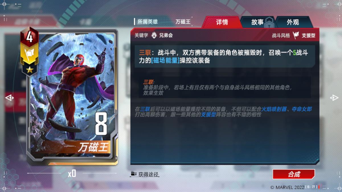 目前,《漫威对决》中一共加入了超过250位的超级英雄,万磁王是最新加入的一个角色,同时,他还带来了“兄弟会”的成员以及全新的玩法机制“三联”,这个全新的阵营,由万磁王和黑凤凰领衔,不仅高度还原漫威宇宙,而且整体实力非常地强劲。