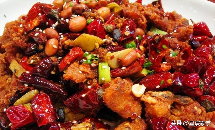 辣子鸡,经典的中国家常菜,一般以整鸡为主料,加上葱、干辣椒、花椒、盐、胡椒、味精等多种材料精制而成,虽然是同一道菜,各地制作也各有特色。