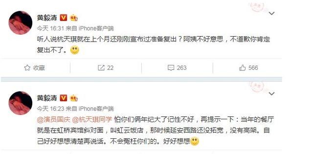 对于张国庆所谓不认识杭天琪的说法,同为娱乐圈人士的黄毅清似乎非常的不屑,直接点名对方: