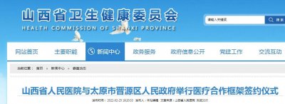 - 山西省人民医院与太原市晋源区人民政府举行医疗合作框架签约仪式 为全面贯彻落实国家、山西省关于公立医院综合改革一系列政策要求,促进优质医疗资源向基层下沉,实现太原市晋...
