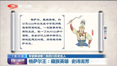 - 四川新闻丨格萨尔王:藏族英雄 史诗流芳 视频加载中... 今天的《专家解读第二批四川历史名人》,我们一起走近神秘的格萨尔王。他一生戎马,惩恶扬善,以他为原型的《格萨尔史诗...