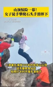 - 女子为拍照攀爬石头手滑摔下,本以为是悲剧,却笑死在网友评论区 谁能想到,一女子为了拍照居然徒手攀爬石头,而在拍照过程中,女子因手滑不幸摔了下去。 此事在网上曝光之后...