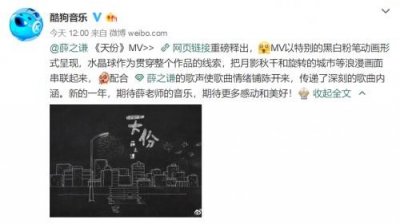 - 薛之谦《天份》MV上线酷狗 定格珍贵回忆
