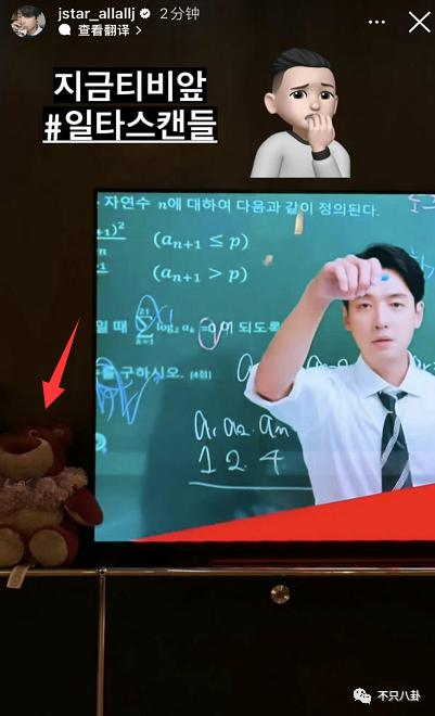 郑敬淏拍自家电视宣传新剧,但照片中电视旁的草莓熊好显眼。