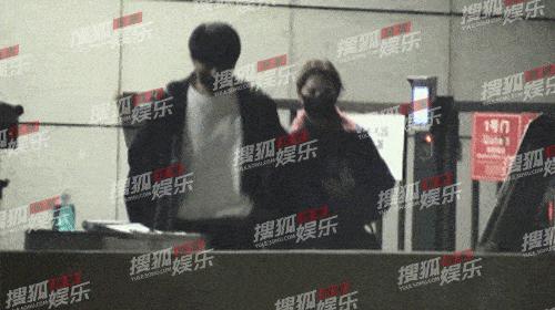 出来以后杨丞琳挽着李荣浩的手臂,李荣浩玩闹着把手臂抽开,两人一起打闹显得十分甜蜜。
