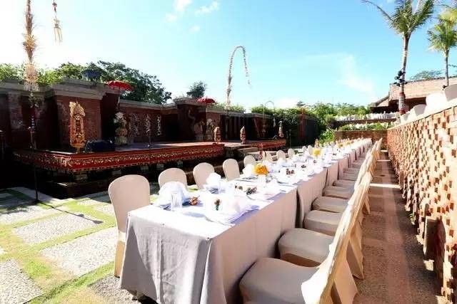 婚礼前一天(3月19日)晚上,两人在巴厘岛举办的迎宾晚宴是这样的,这恐怕是娱乐圈明星最隆重的婚前晚宴。明艳黄裙加头上的黄色花朵,婚礼前的诗诗已经够美了↓