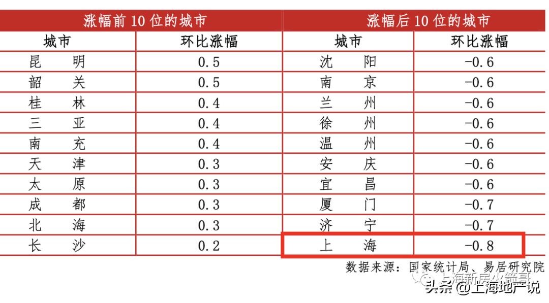 上海是全国70城房价指数监测中,涨幅倒数第1的城市;