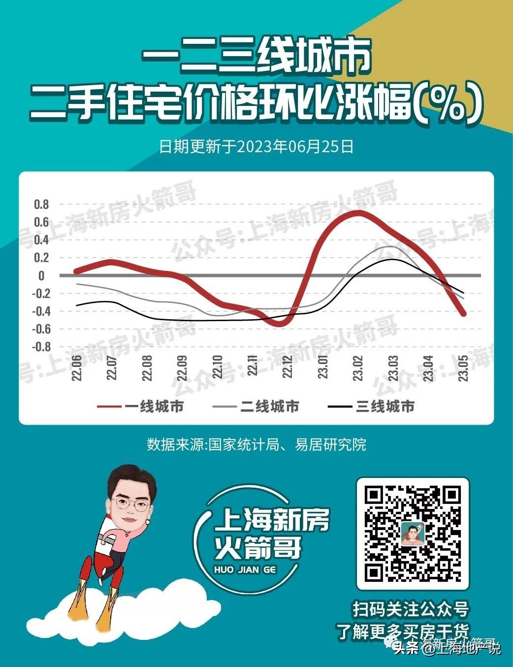 但让人没想到的是,根据国家统计局发布的2023年5月最新全国70城二手房价指数数据: