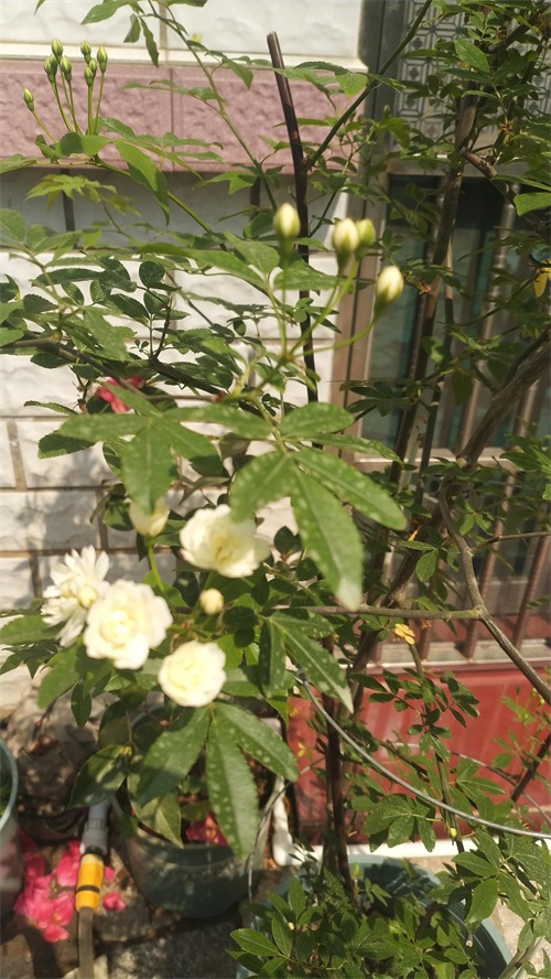 月季类中先开花的是黄木香,三种颜色的木香花中,只有白木香有迷人的香味,黄木香、红木香都没有香味。