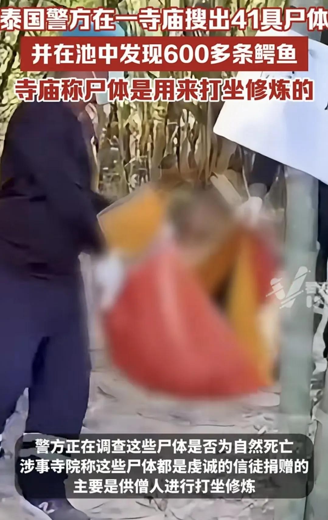 今年11月泰国警方检查泰国披集府的一个寺庙的15个凉亭里发现了41具无名尸体,寺庙主持交代这些尸体是信徒捐赠,主要用来训练弟子在冥想时的胆量,帮助弟子打坐修炼。