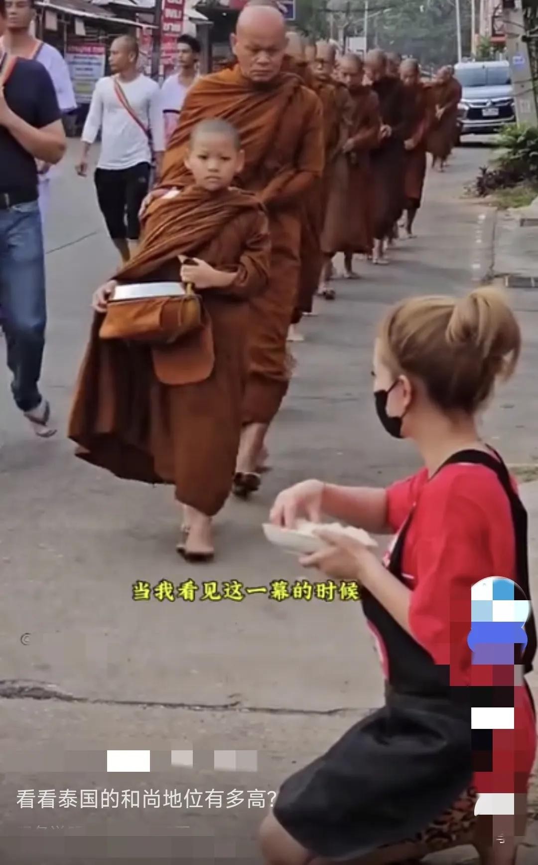 于是再这样的背景下泰国的僧人权利可以说是巨大,就连在乞食时普通人供奉都得跪地,得到的高僧国王都得对其行跪拜礼。