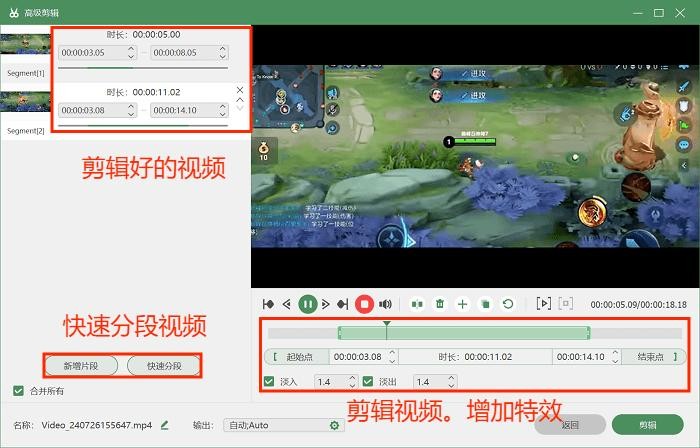步骤3:录制完成后,数据蛙还提供了丰富的视频编辑功能,如剪辑、快速分段等,让你轻松打造出专业级的游戏视频。