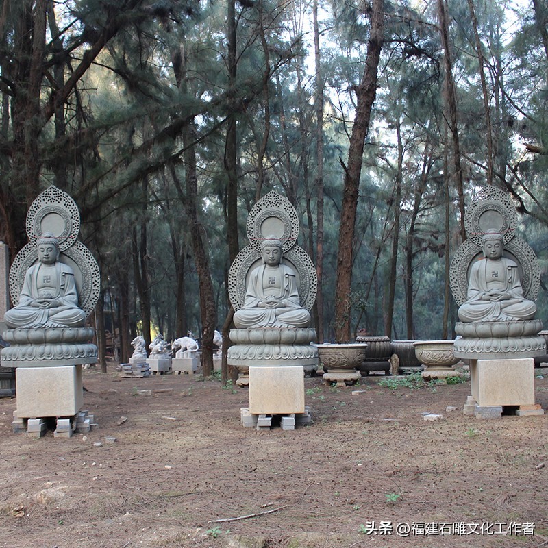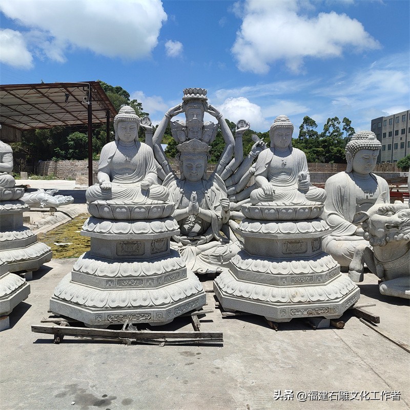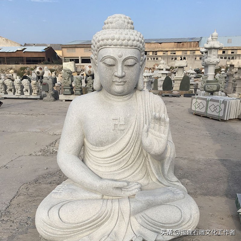 接下来,我为大家详细介绍石雕如来佛祖的释迦五印。说法印:以拇指与中指(或食指、无名指)相捻,其余各指自然舒散。这一手印象征着佛说法之意,表现佛陀于鹿野苑初转法轮时的状态。它代表着以法轮摧破烦恼,使身心清净,因此也被称为“转法轮印”。施无畏印:右手臂上举于胸前,手指自然舒展向上,掌心朝外。这一手印表示佛陀以自己的智慧力量使信众消除恐惧,象征着布施无怖给众生。据说,这一手印能使众生心安,无所畏惧,因此得名“施无畏印”。禅定印:双手掌心向上相叠放于膝上,右手置于左手之上,两拇指指端相接。这一手印象征着禅定状态,代表着内心如如不动、外不着相的修行境界。