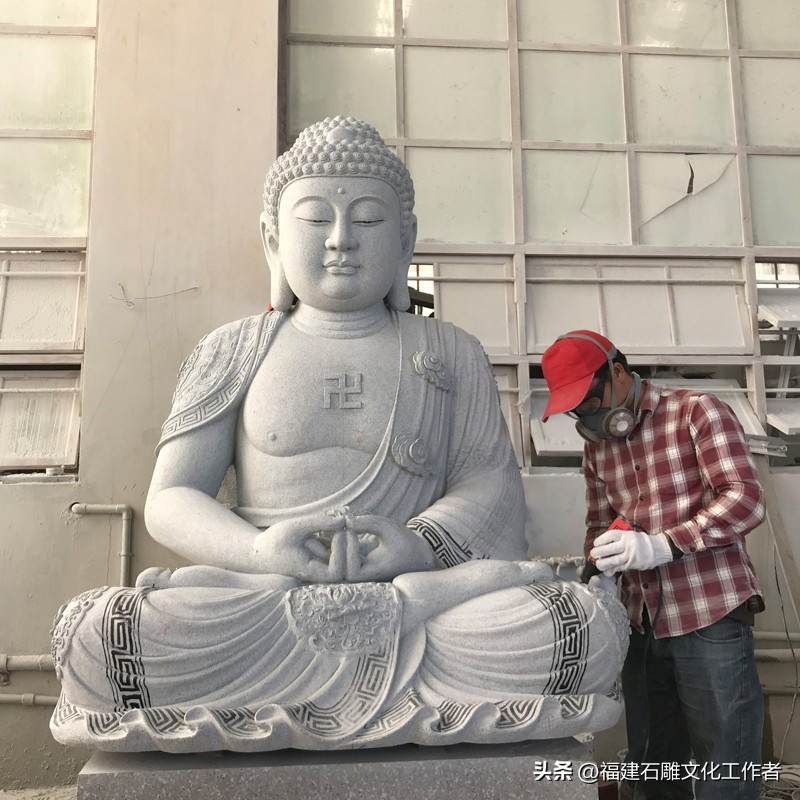 庄严肃穆的石雕如来佛是佛教艺术的重要表现形式,其承载着深厚的宗教文化内涵和精湛的石雕技艺。石雕如来佛祖的形象通常可分为站姿、坐姿和卧姿三种形态。站姿的如来佛石像显得威严庄重,而坐姿的如来佛则多呈跏趺坐(即双腿交叉盘坐于莲花座上),安详的坐姿象征着如来佛内心的平静与稳定。还有一种姿仪叫卧姿,其多呈现涅槃状,表现出一种超脱世俗的宁静与安详。石雕大日如来佛不仅拥有不同的姿仪,还有许多独特的手势,而且都分别蕴含着不同的特殊含义。