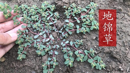 形态特征:一年生草本。茎匍匐,自基部以上多分枝,带紫红色,无毛。叶对生,矩圆形或椭圆形,先端钝圆,基部偏斜,略渐狭,边缘有细锯齿,绿色或带紫红色,两面无毛或有时具疏柔毛。杯状聚伞花序单生于叶腋,花单性,雌雄同序,总苞倒圆锥形,淡红色,雄花数枚,明显伸出总苞外;雌花 1 枚,子房柄伸出总苞外。功效:清热解毒,凉血止血,利湿退黄。可用于痢疾、泄泻、咯血等。