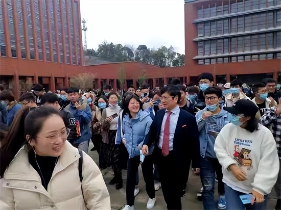 学生们很喜欢郑强,只要他演讲,底下坐无缺席,有不少人即使站着也要听。不能到现场的学生,还会在晚上下课后,在宿舍聚在一起看郑强的演讲视频,并亲切地称呼他为强哥。